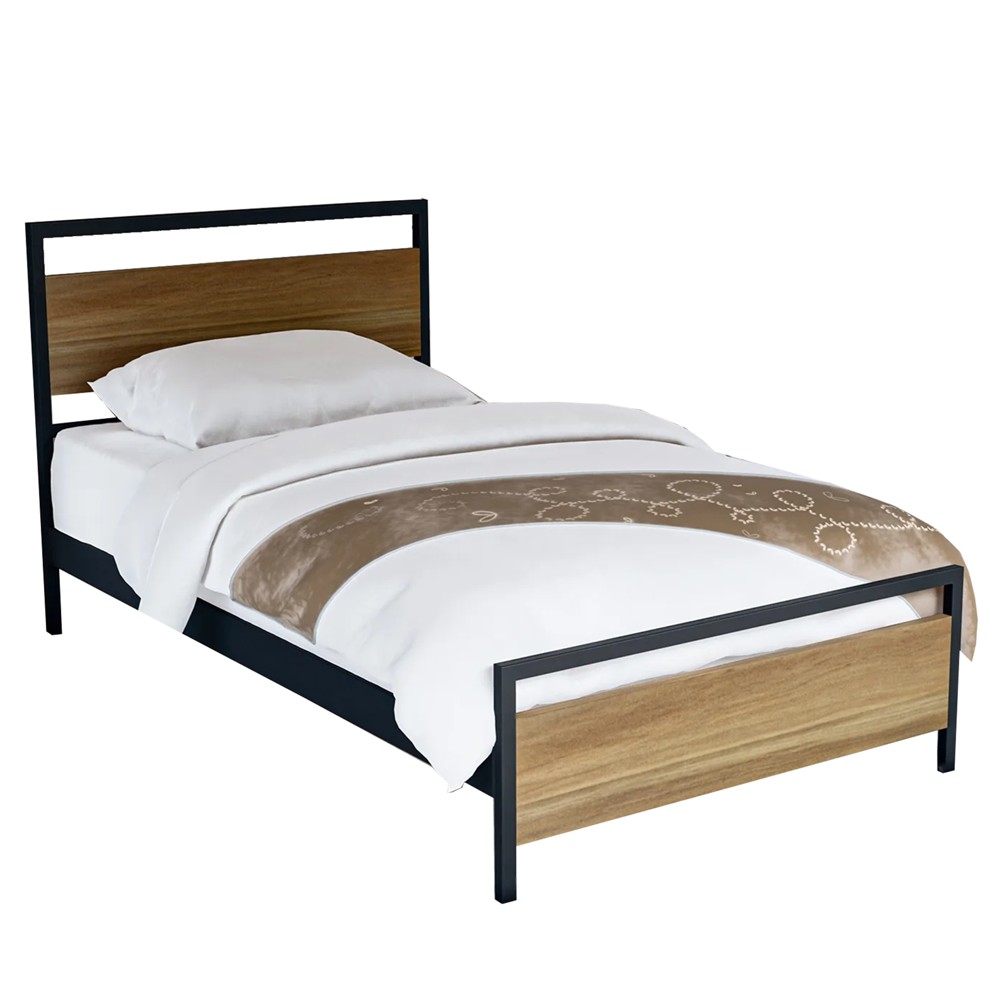 Krevat tek, Star, strukturë metali, e zezë/kafe, 190x90x36 cm