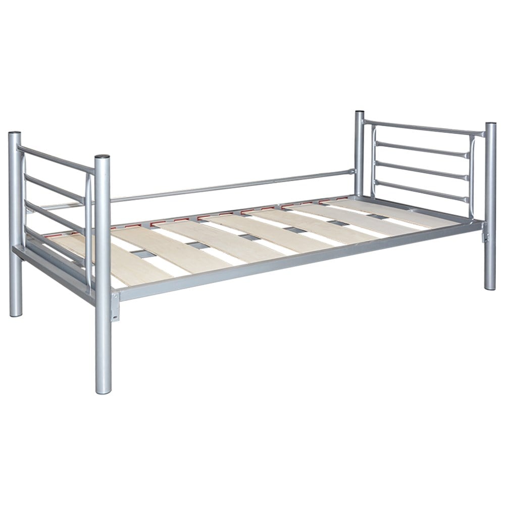 Krevat tek, strukturë metali dhe dërrasë ortopedike, argjendi, 90x190xH34-86 cm