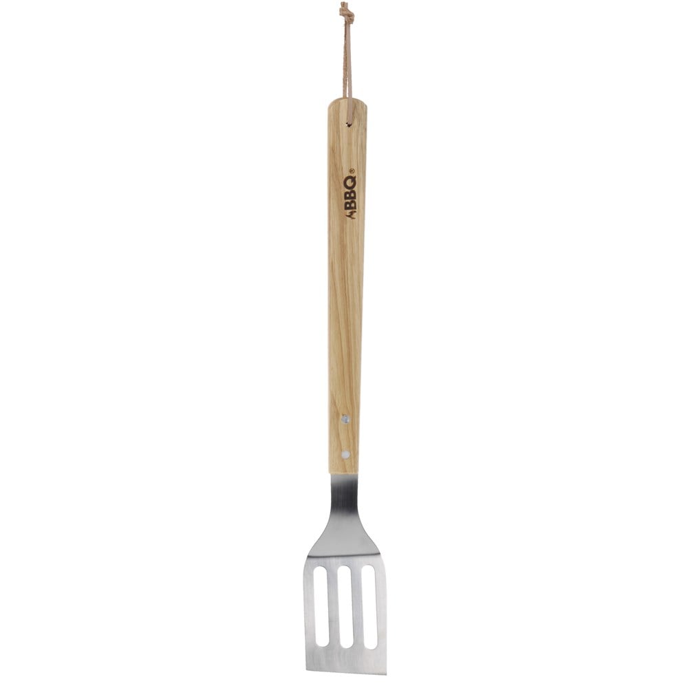 Kthyesi për barbekju 46 cm është prej material inoksi, me sipërfaqe jongjitëse dhe me dorezë prej druri pishe. Është rezistent dhe pastrohet lehtë.