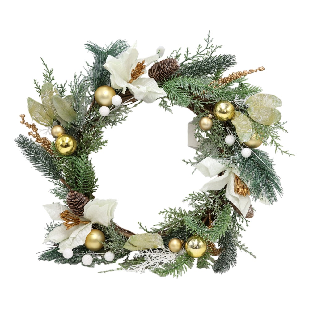 Kurorë dekoruese, plastik, e bardhë/jeshile, 40 cm