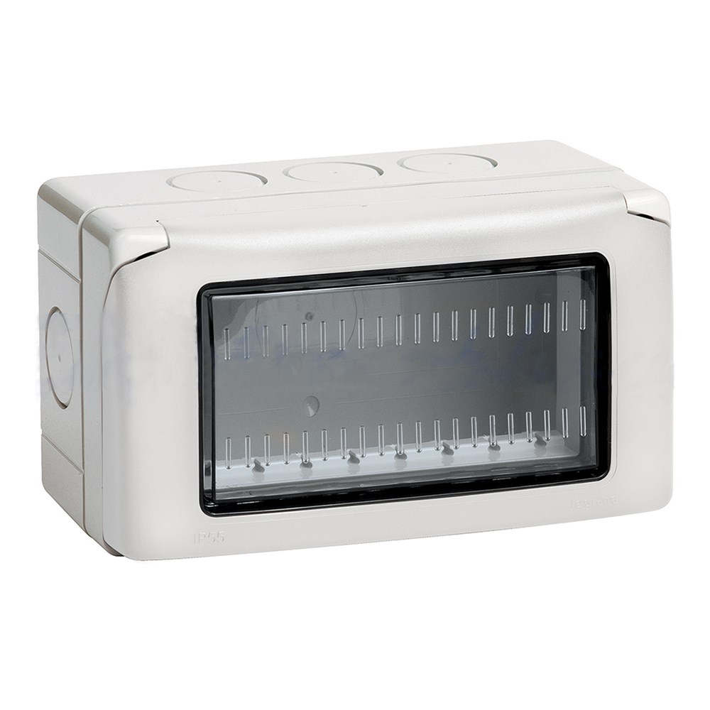 Kutia instaluese modulare jashtë murit ka përdorim në objektet industriale (për të lehtësuar ndërhyrjet në rrjet), në ambiente të jashtme (shkalla e izolimit që ato kanë i bën të përdorshme dhe të sigurta ), në objektet e përfunduara (falë formës janë estetikisht të përdorueshme). Ajo është e pajisur me një kapak transparent. Mund të fiksohet në çdo lloj sipërfaqe muri dhe është rezistente ndaj agjentëve atmosferikë.