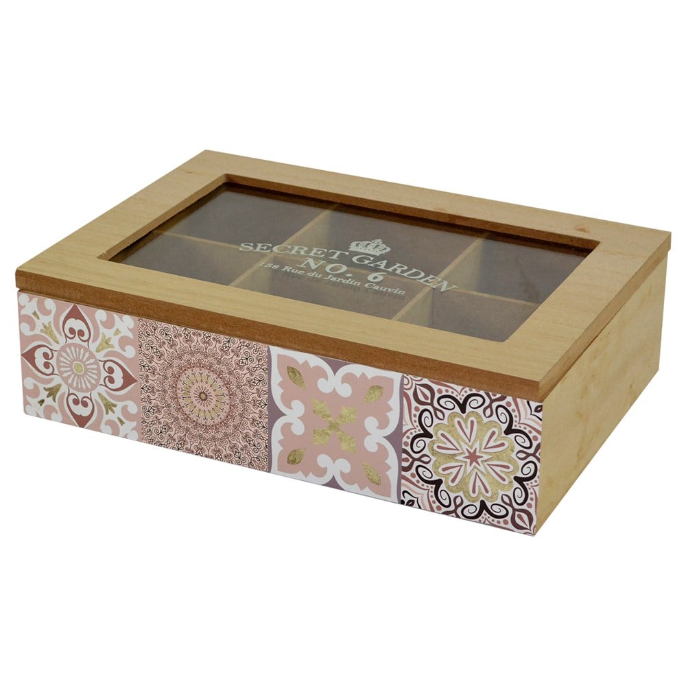 Po vlerësoni:Kuti caji 6 ndarje, Permasa: 24x16x7cm, Ngjyra: Natyrale, Materiali: Druri