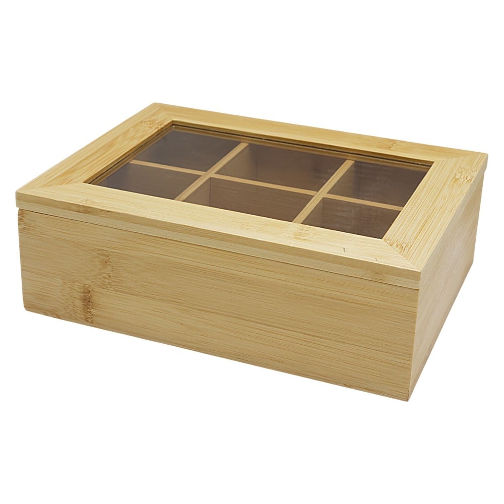 Kutia e çajit me 6 ndarje është e prodhuar nga bambu natyrale, duke i dhënë një pamje elegante dhe të ngrohtë. Me përmasa 21×6 cm, ajo është praktike dhe funksionale, ideale për organizimin e llojeve të ndryshme të çajit dhe mbajtjen e tyre të rregulluara dhe lehtësisht të aksesueshme.