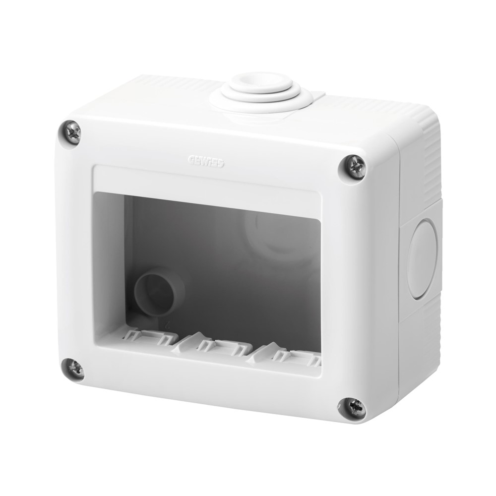 Kutia instaluese 1 modulare jashtë murit ka përdorim në objektet industriale (për të lehtësuar ndërhyrjet në rrjet), në ambiente të jashtme. Shkalla e izolimit që ato kanë i bën të përdorshme dhe të sigurta në objektet e përfunduara (falë formës janë estetikisht të përdorueshme). Ajo mund të fiksohet në çdo lloj sipërfaqe muri dhe është rezistente ndaj agjentëve atmosferikë.