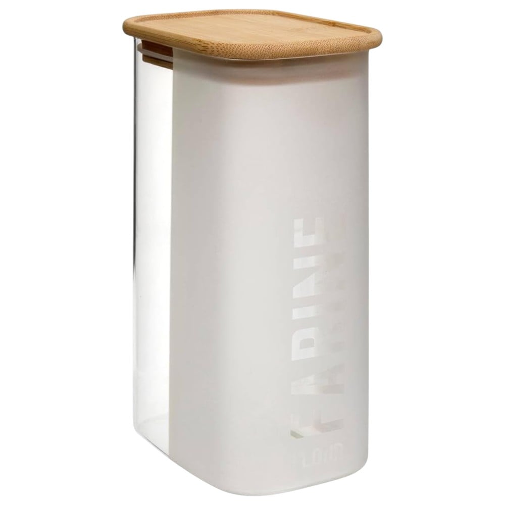 Kjo kuti konservimi për miell Glassy, prej qelqi dhe bambu, është ideale për ruajtjen e miellit në mënyrë të freskët dhe të organizuar. Me trup transparent prej qelqi dhe kapak natyral prej bambu, lejon të shihni përmbajtjen dhe shton një dizajn elegant në kuzhinë. Kapaciteti 1.6 L dhe përmasat 9 × 13 × 21.5 cm e bëjnë të përshtatshme për raftet ose banakun e kuzhinës, ndërsa materiali i qëndrueshëm siguron përdorim afatgjatë.