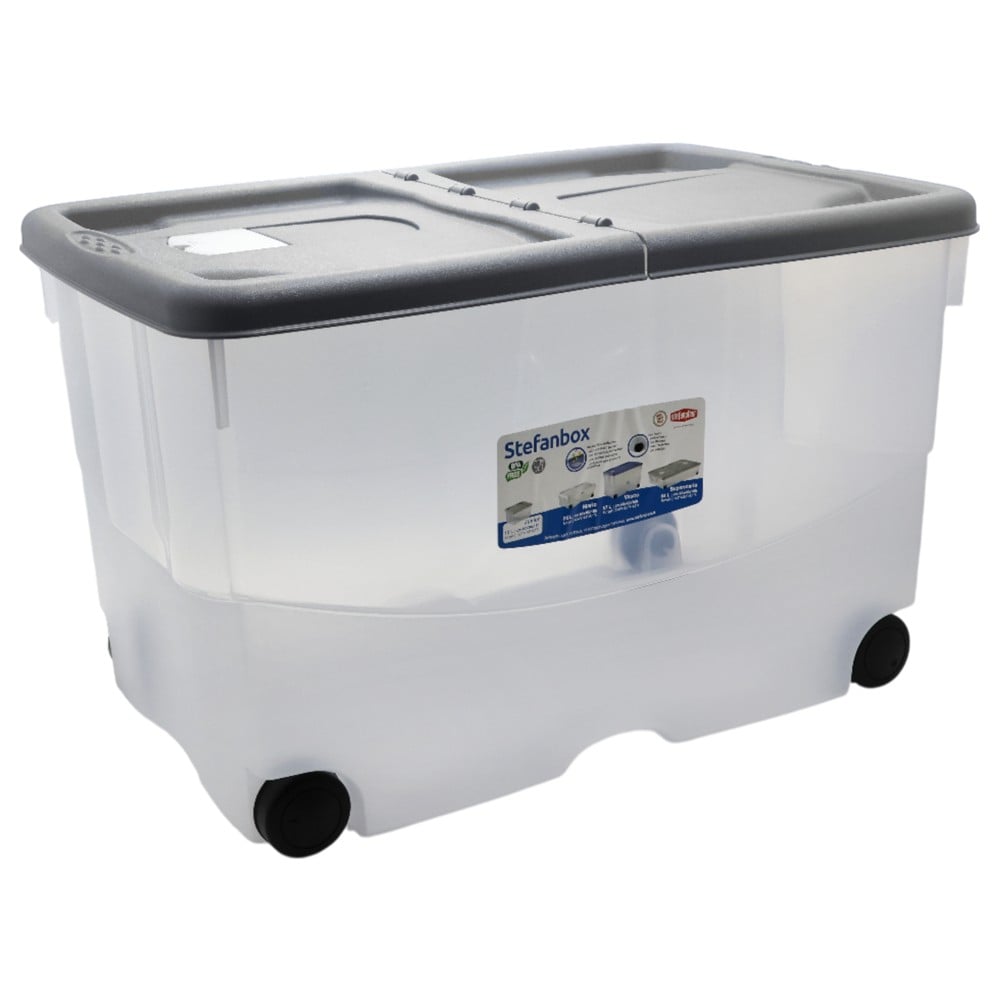 Kuti magazinimi me rrota, plastike, transparente/ gri, 57 lt, 60x40xH36 cm