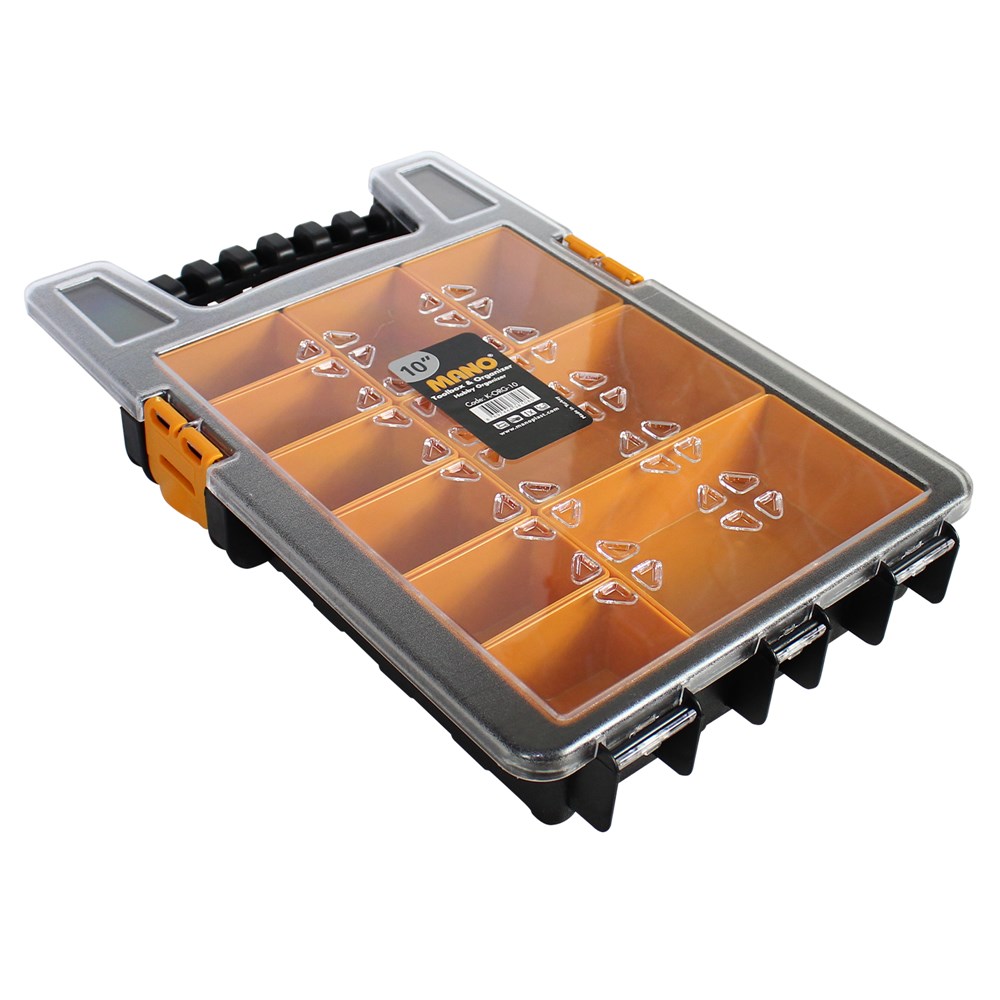 Kuti e veglave organizuese prej plastike transparente me 10 ndarje, me përmasë 357x237x56 mm është e dizenjuar për t'u përdorur nga profesionistët. Kjo kuti ka një konstrukt të fortë dhe rezistent. Me mundësi organizimi të aksesorëve të veglave dhe ndarje sipas madhësive të tyre. Duke bërë të mundur sistemimin e veglave në një hapësirë shumë të vogël.
