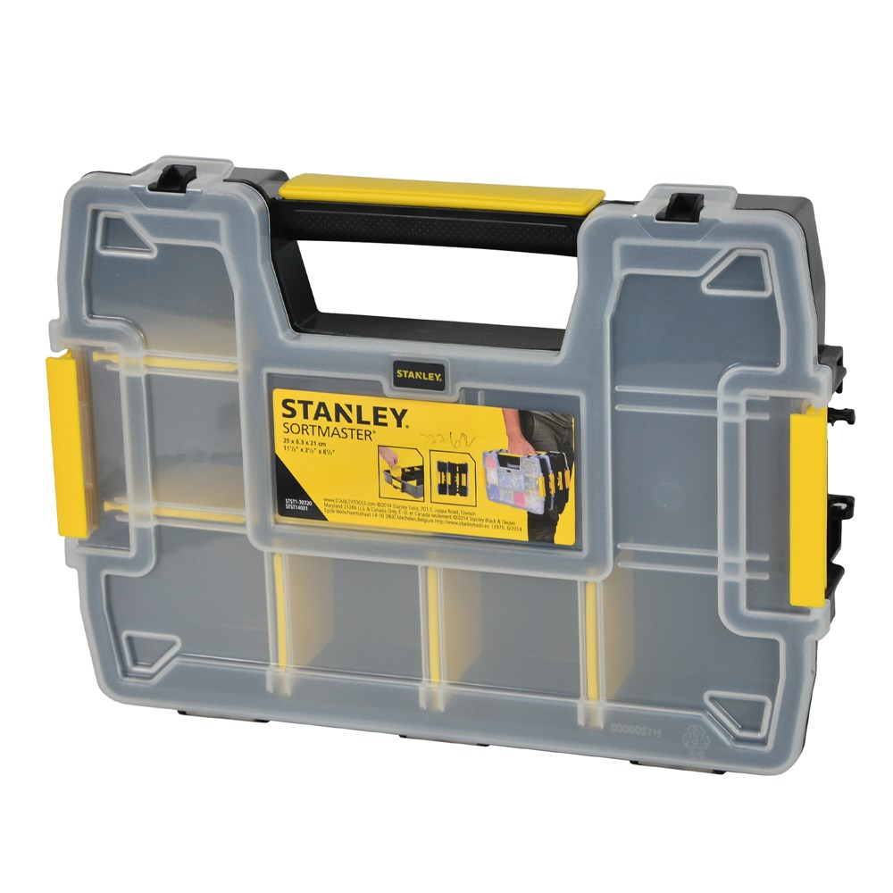 Kuti plastike organizuese, plastike. Sistemi inovativ mbyllje mundëson lidhjen dhe transportin e deri në tre organizatorët individuale. Dizajni i veçantë i kapakut mban pjesë të vogla në vend. Gjithashtu në dispozicion si organizator i dyfishtë (dy teke) me vendosje në të dyja anët në dispozicion (STST1-71197).