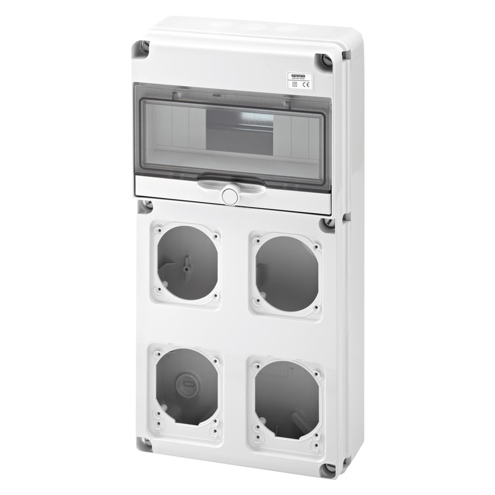 Kuti prizash industriale,xham trensparent, 10mod, 4 fllanxha, 16/32A, plastike, IP65. Kutitë shpërndarëse janë aksesorë të domosdoshëm për shpërndarjen dhe mirë organizimin e kabllove elektrikë. Kjo kuti shpërndarëse është material plastik rezistente ndaj zjarrit dhe është e pajisur me kapak të bardhë për një izolim sa më të mirë dhe për një pamje sa më elegante.