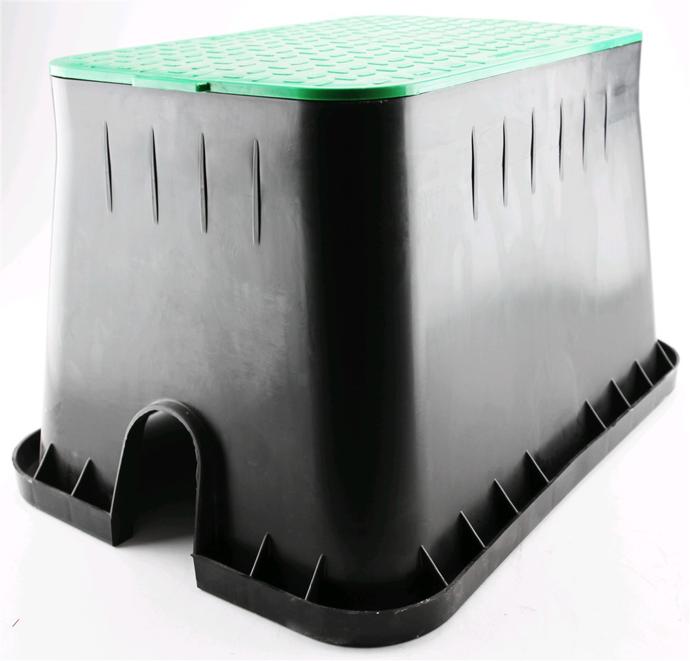 Kuti valvulash drejtkëndëshe (12 ") H302xW504/414xw282mm plastike i cila lejon vendosje të lehtë të elektrovalvulave dhe valvulave manuale të cilat janë përdorur në instalimet e sistemit ujitjes në kopsht. Kutia e valvulave eshte e ndertuara me material polipropileni.