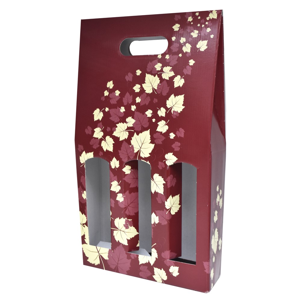 Kuti vere me dorezë e bërë nga material kartoni. Është ideale për t'u përdorur për dhurata. Trashësia e këtij ambalazhi është perfekte për të mbajtur 3 shishe.
