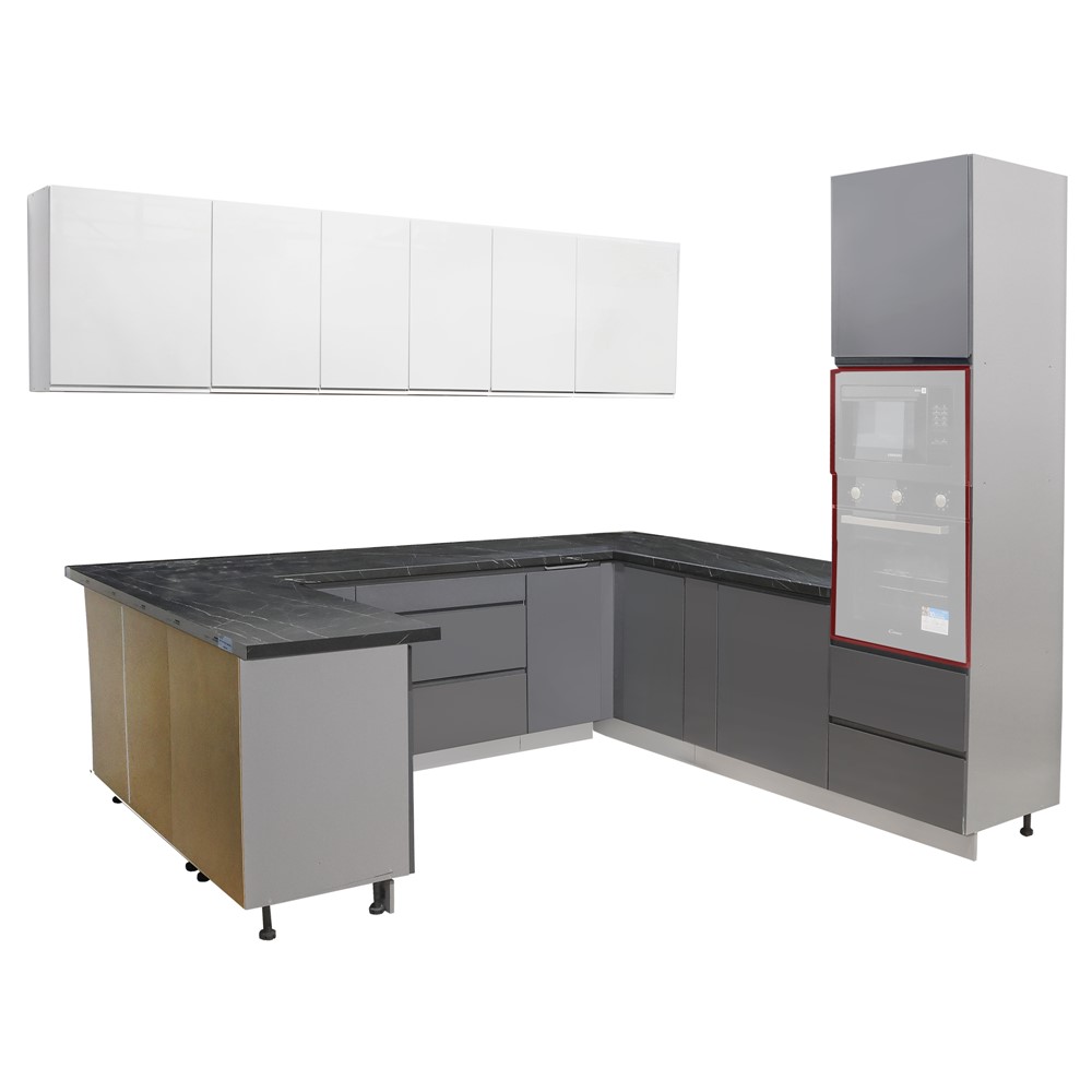 Po vlerësoni:Kuzhinë, Lamja Graphite, strukturë melamine, mdf, gri, 245x164x179 cm