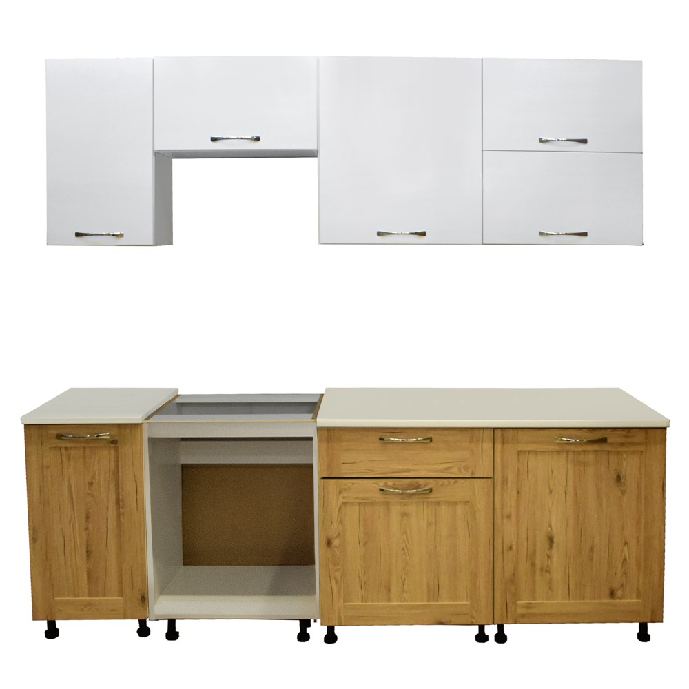 Po vlerësoni:Kuzhinë, San Marino, bango e përfshirë, melaminë, lisi/e bardhë, 220 cm