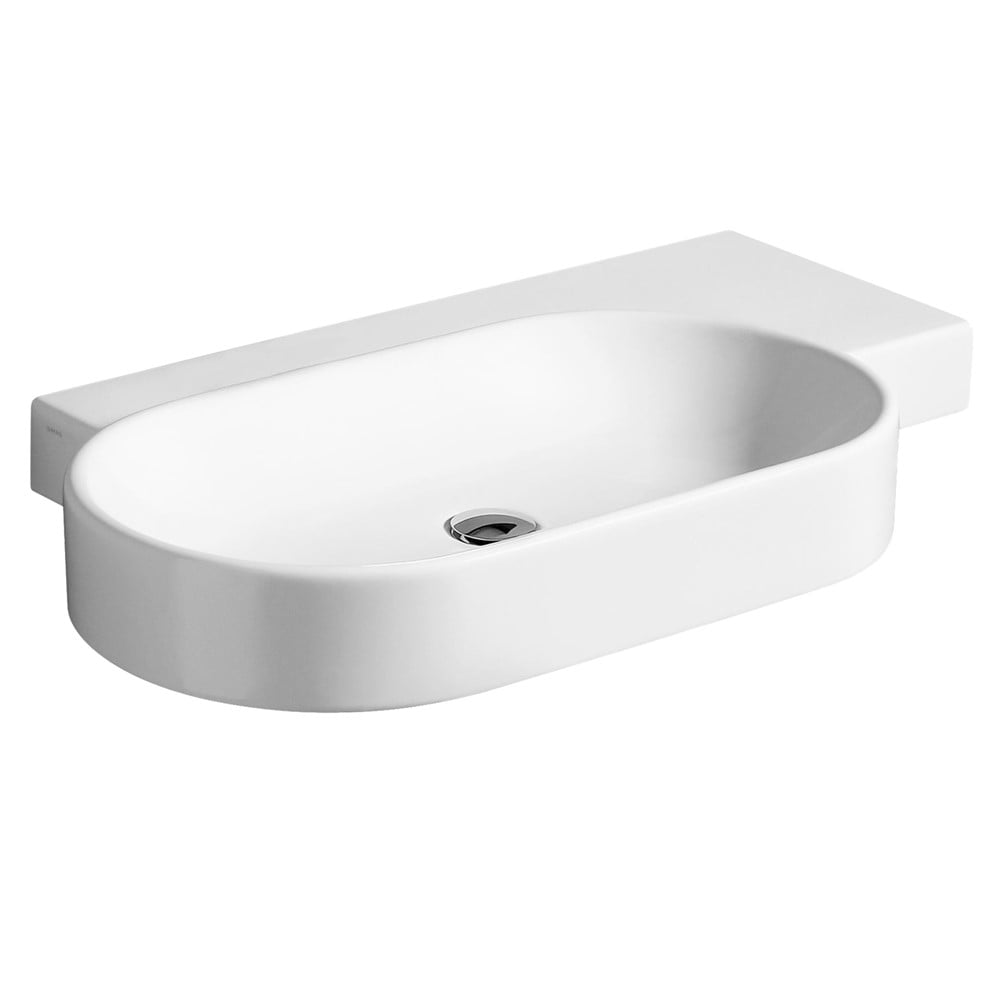 Lavaman oval prej qeramike në ngjyrë të bardhë me shkëlqim dhe me raft në të djathtë. Një koncept fleksibël dhe arkitektonik për një shije të re në arredimin e tualeteve. Një koleksion minimalist dhe dinamik i bazuar në elemente klasike të dizajnit, forma gjeometrike që ndajnë hapësirën e përbashkët. Flow ofron një shumëllojshmëri kombinimesh me një linjë të plotë aksesorës. Idealisht i përshtatshëm për çdo ambient të vogël ose të madh.