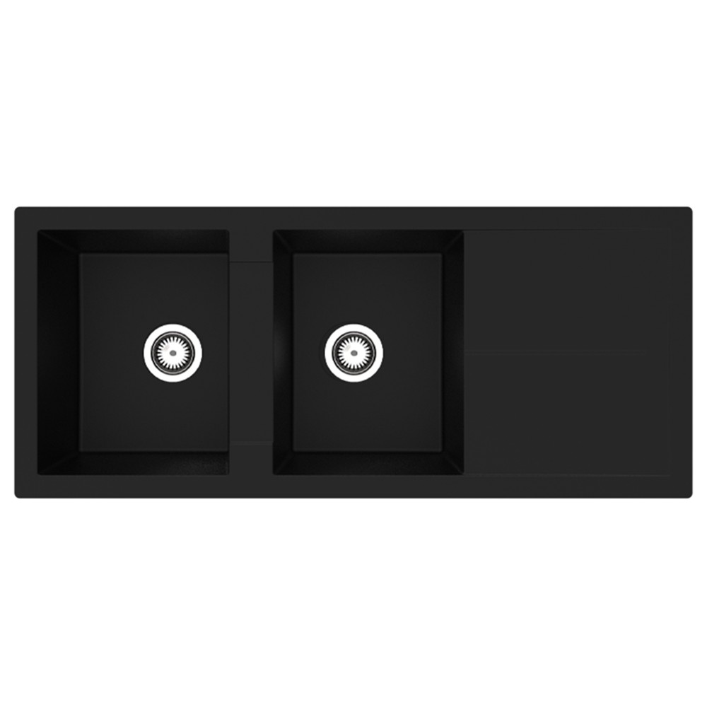 Lavapjatë, 2 gropa, djathtas/majtas, rezinë (40%) dhe fibra xhami(60%), e zezë, 116x50xH21.4 cm
