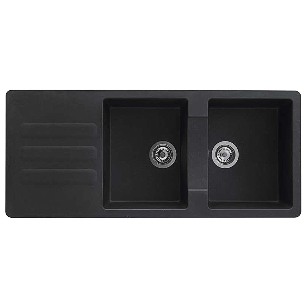 Po vlerësoni:Lavapjatë, 2 gropa, Vogua, resinë (40%) dhe fibra xhami dhe minerale (60%), zezë, 116x50xH21 cm