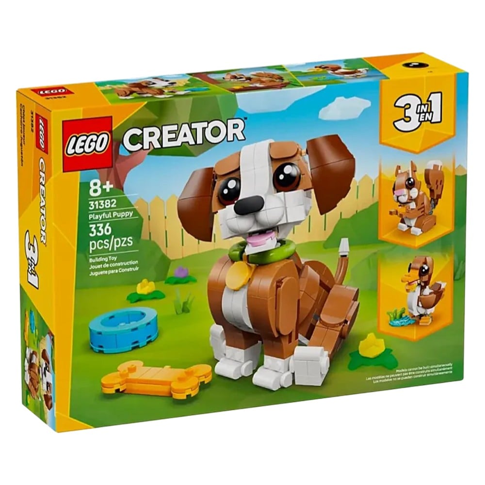 Blloqet Lego janë të bëra prej plastike dhe janë të dizajnuara në një mënyrë të veçantë që të lidhen së bashku në një mënyrë të sigurt dhe të qëndrueshme. Blloqet janë të disponueshëm në një gamë të gjerë ngjyrash dhe forme duke bere qe femijet te humbasin pas ndertimit te tyre. Seti perfshin blloqet per ndertimin e Playful Puppy Dog.