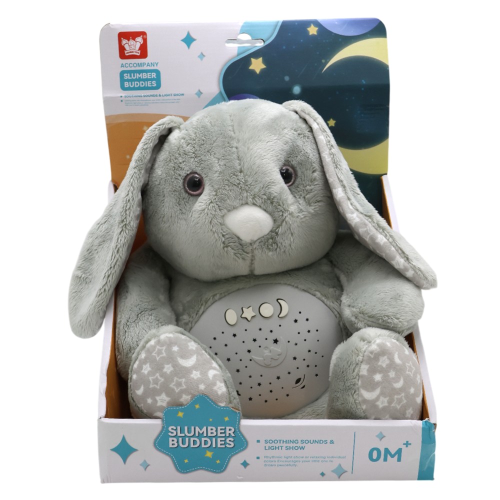 Një mik i butë dhe plot magji për fëmijët. Ky lepurush pellushi ka funksion ndriçues dhe tinguj të këndshëm, duke ofruar shoqëri, qetësi dhe argëtim. Me madhësi 34 cm dhe ngjyrë gri neutrale, është perfekt si dhuratë për çdo fëmijë.
