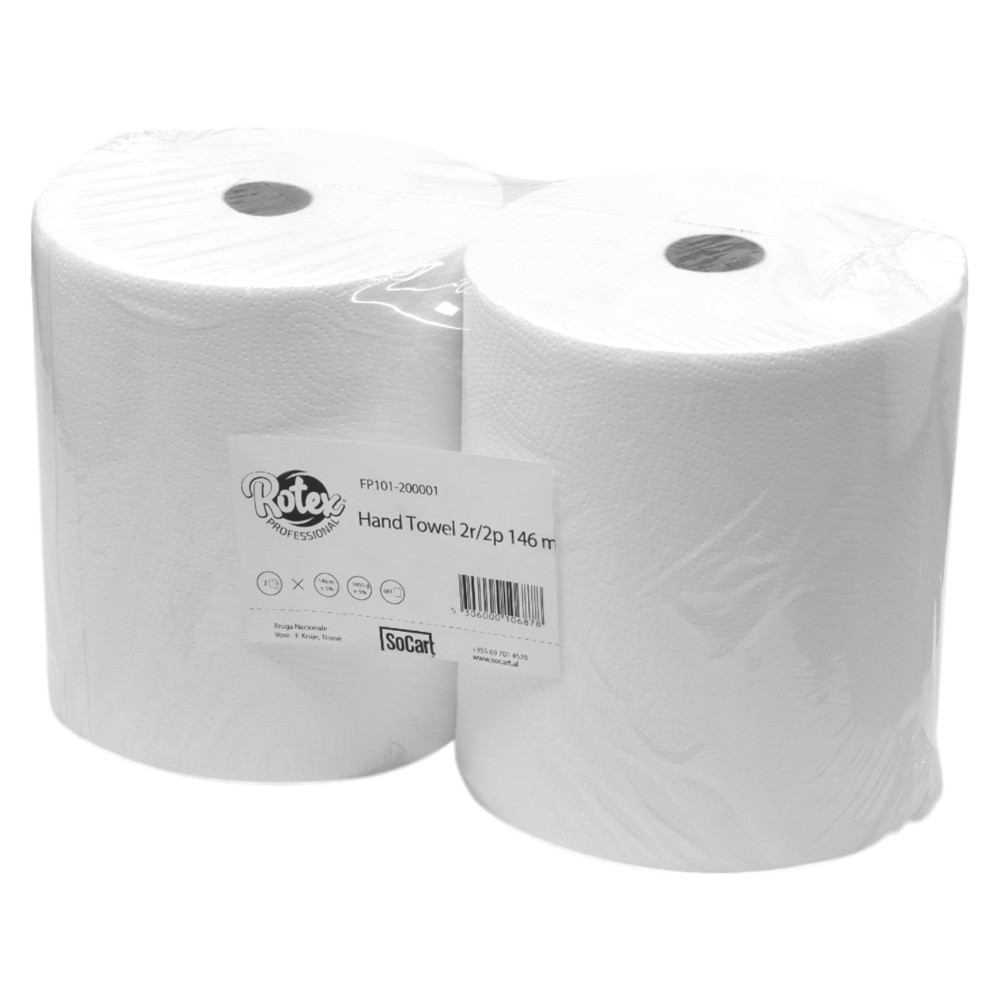 Letër duarsh profesionale Rotex, ideale për përdorim në ambiente komerciale, industriale. Përbëhet nga 2 role me 2 shtresa, duke ofruar rezistencë dhe përthithje të lartë. Secila roll ka gjatësi 146 metra.