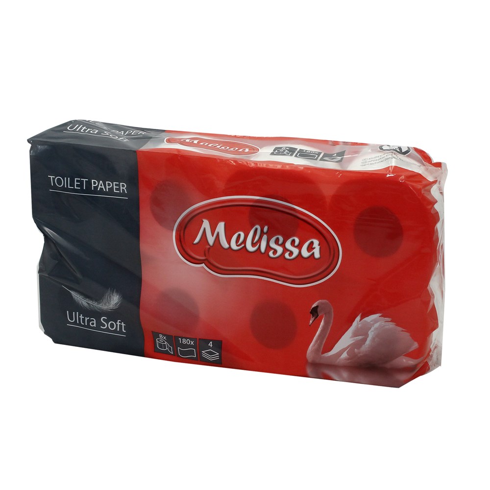 Një butësi dhe ndjesi e jashtëzakonshme vjen me linjën e re të letrës higjenike Melissa. Letrat higjenike janë produkte me cilësi të lartë, 100% celulozë, të buta dhe të paketuara me kujdes. Janë të tretshme në ujë. Mbështjellja ndihmon në ruajtjen e niveleve të larta të higjenës dhe nuk përmbajnë ngjyra ose aroma artificiale, si edhe janë të certifikuara dermatologjikisht duke demonstruar një produkt me cilësi të lartë.