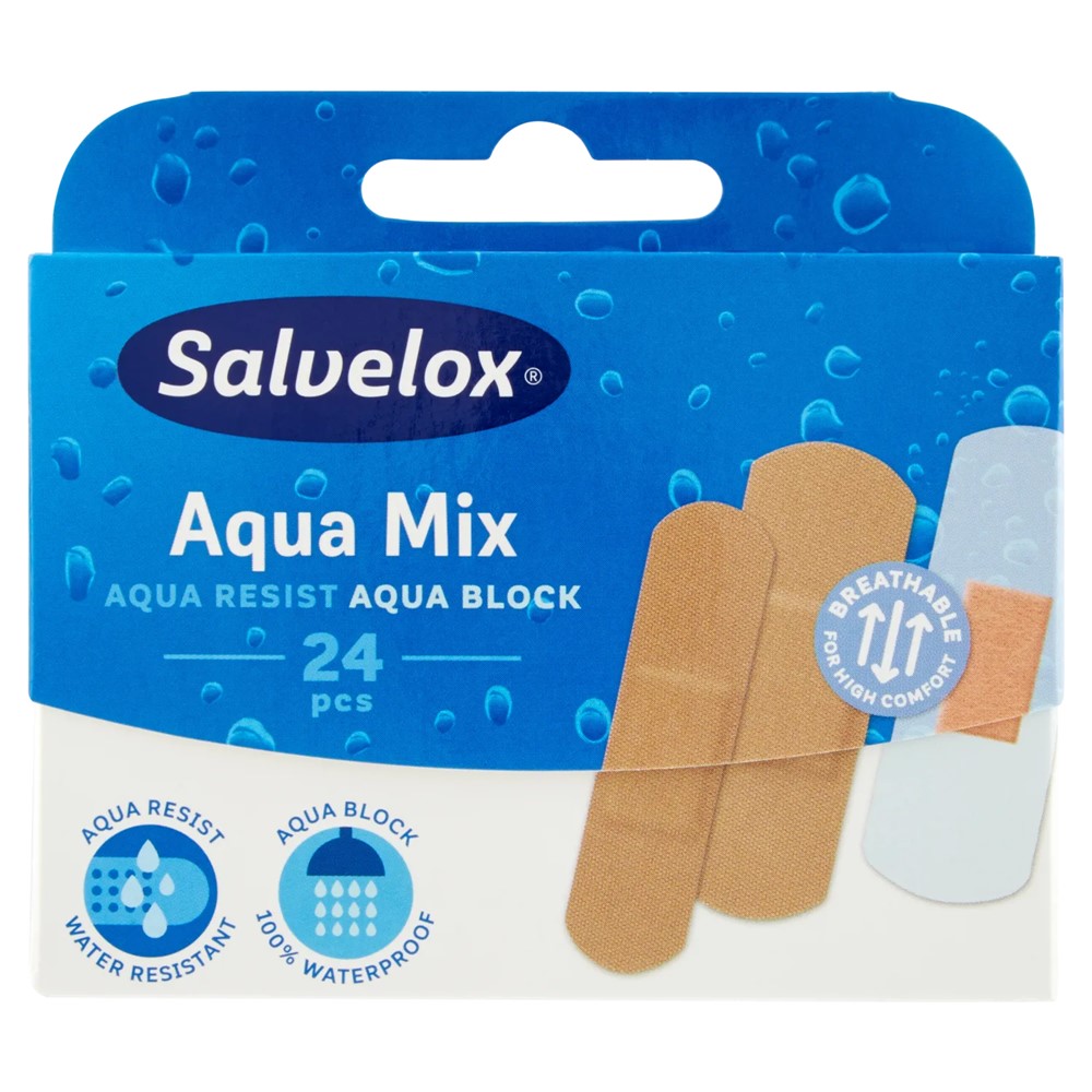 Leukoplasti i ndihmës së shpejtë Salvelox në formë drejtkëndore, në ngjyrë kafe, 16 copë rezistent ndaj ujit dhe 8 copë të papërshkrueshëm ndaj tij, Përdoret për të fashuar plagët e vogla, gërvishjet etj. Përdoret për udhëtime, në shtëpi dhe makinë. Seti përmban 24 copë.
