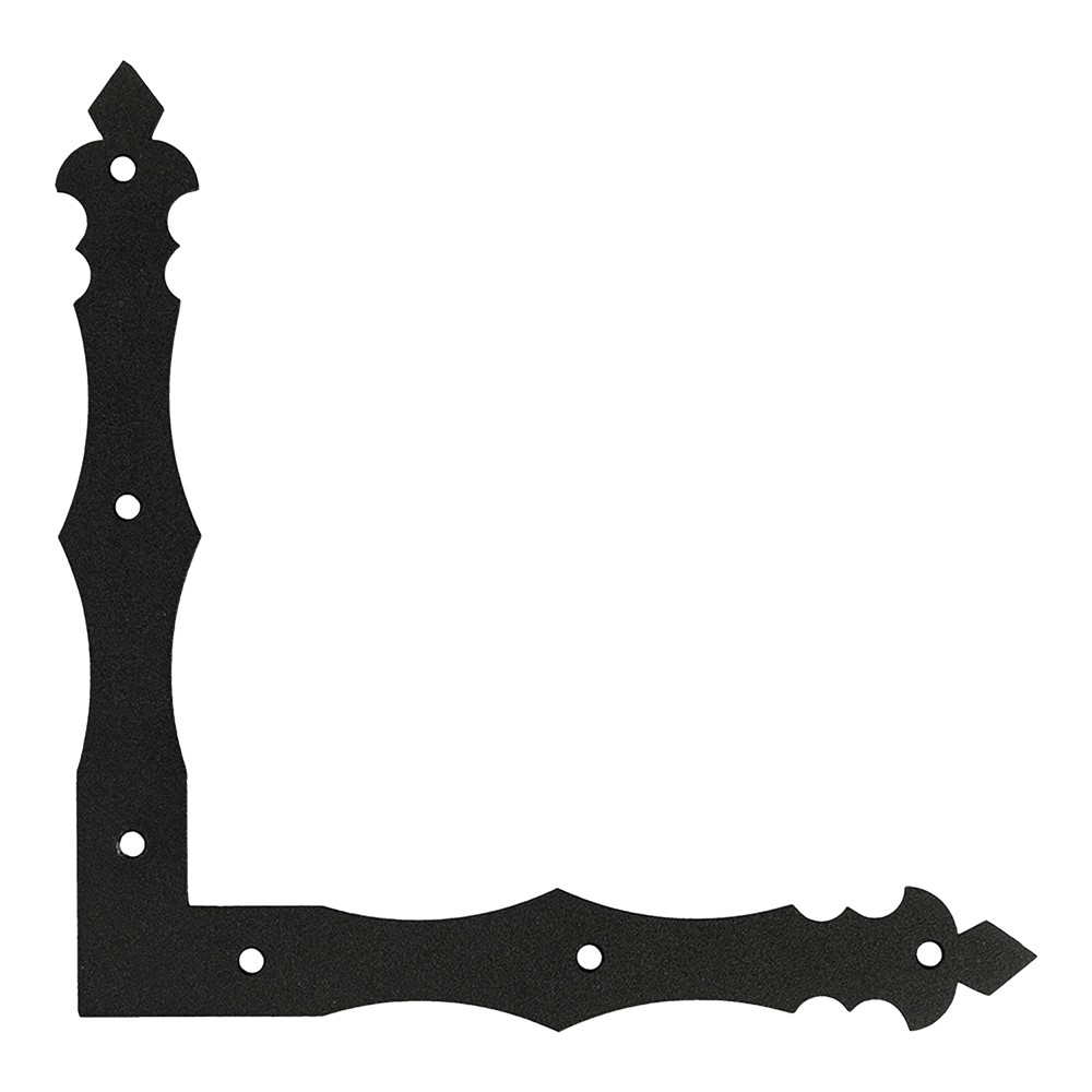 Lidhëz druri këndore, prej materiali zinku të galvanizuar, me përmasa 30x30x4x0.4 cm, në ngjyrë të zezë, e pajisur me veshje të jashtme Duplex, me pluhur zinku, e cila e mbron kundër korrozionit dhe ndryshkut. Përdoret për të mundësuar një lidhje sa më të mirë të elementëve të drurit me njëri-tjetrin, si edhe shërben si një element dekorativ për sëndukët, kutitë e drurit, kornizat e drurit, etj.