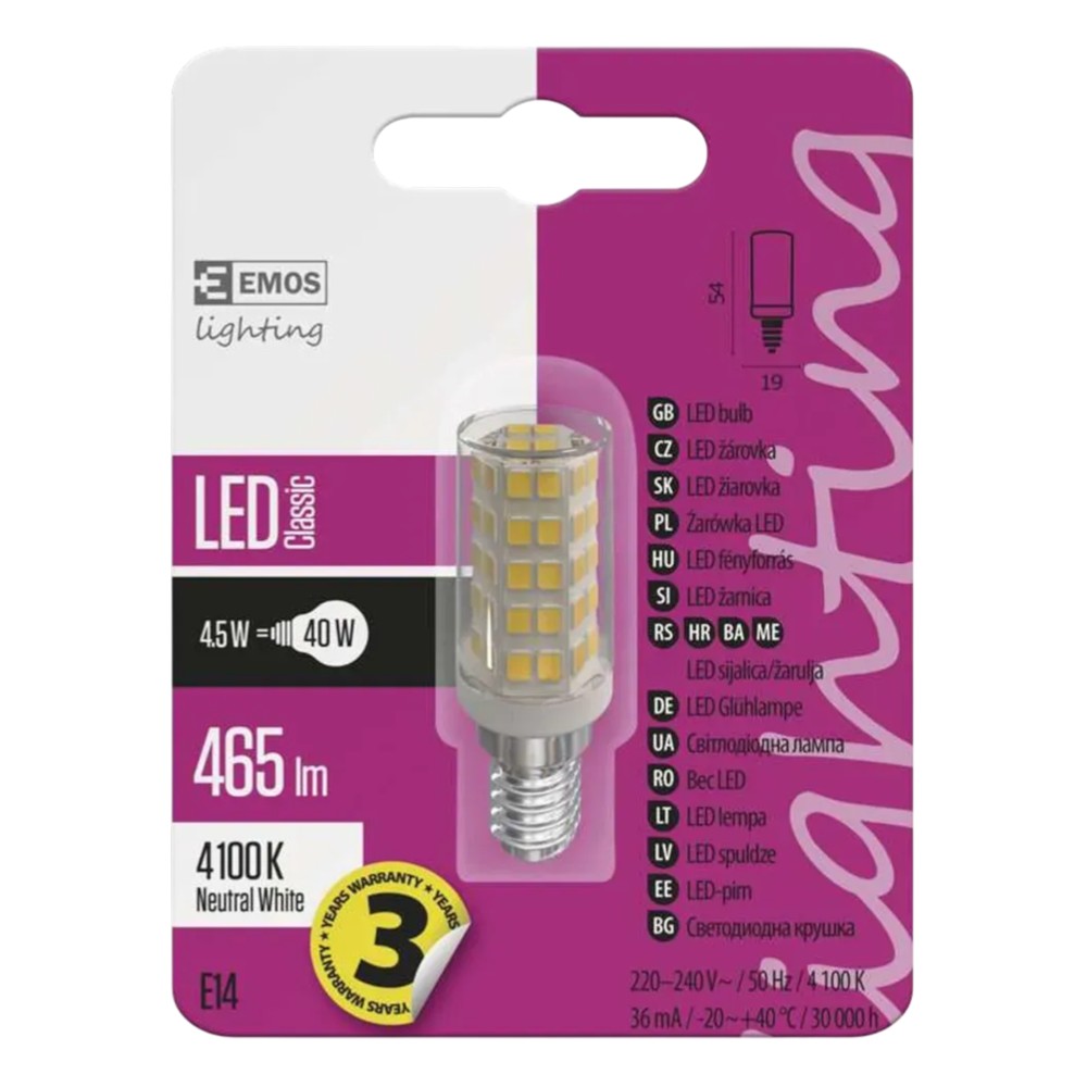 Llambë LED E14 (4.5W ≈ 40W, 465lm, 4000K) është zgjidhje efikase dhe ekonomike për ndriçim të brendshëm. Me konsum vetëm 4.5W, zëvendëson llambat tradicionale 40W, duke ofruar kursim energjie. Jep ndriçim 465 lumen me dritë natyrale 4000K, e përshtatshme për ambiente shtëpie, zyra apo ndriçim dekorativ. Ofron jetëgjatësi të lartë dhe performancë të qëndrueshme.