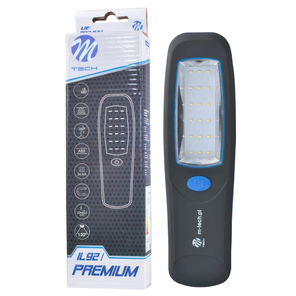 IL92 Premium është një llampë inspektimi unike dhe inovative e bazuar në çipat LED OSRAM Opto Semiconductors me cilësi të lartë. IL93 siguron dritë të fortë në vendet e vështira për t'u arritur dhe mbetet shumë i dobishëm për shkak të magneteve të përdorur dhe dorezës kundër rrëshqitjes. Llampa e inspektimit është e certifikuar me IPX4 që do të thotë rezistente ndaj ujit, papastërtive dhe goditjeve. Llampat tona të inspektimit janë projektuar duke pasur parasysh kushtet më të vështira të punës. Specifikime: Përmasat: 20x6x3cm 3x bateri AA Magnet i fortë Shtresë ABS Certifikata IPX4 Burim drite: 18 x LED Osram Opto Semiconductors