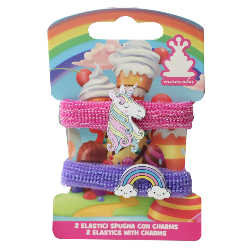 Llastik flokësh për fëmijë, Unicorn është një set llastikësh për flokë të dizajnuar me motive të Unicorn. Llastikët janë në ngjyrën lejla dhe rozë, dhe vijnë në një set prej 2 copësh.
