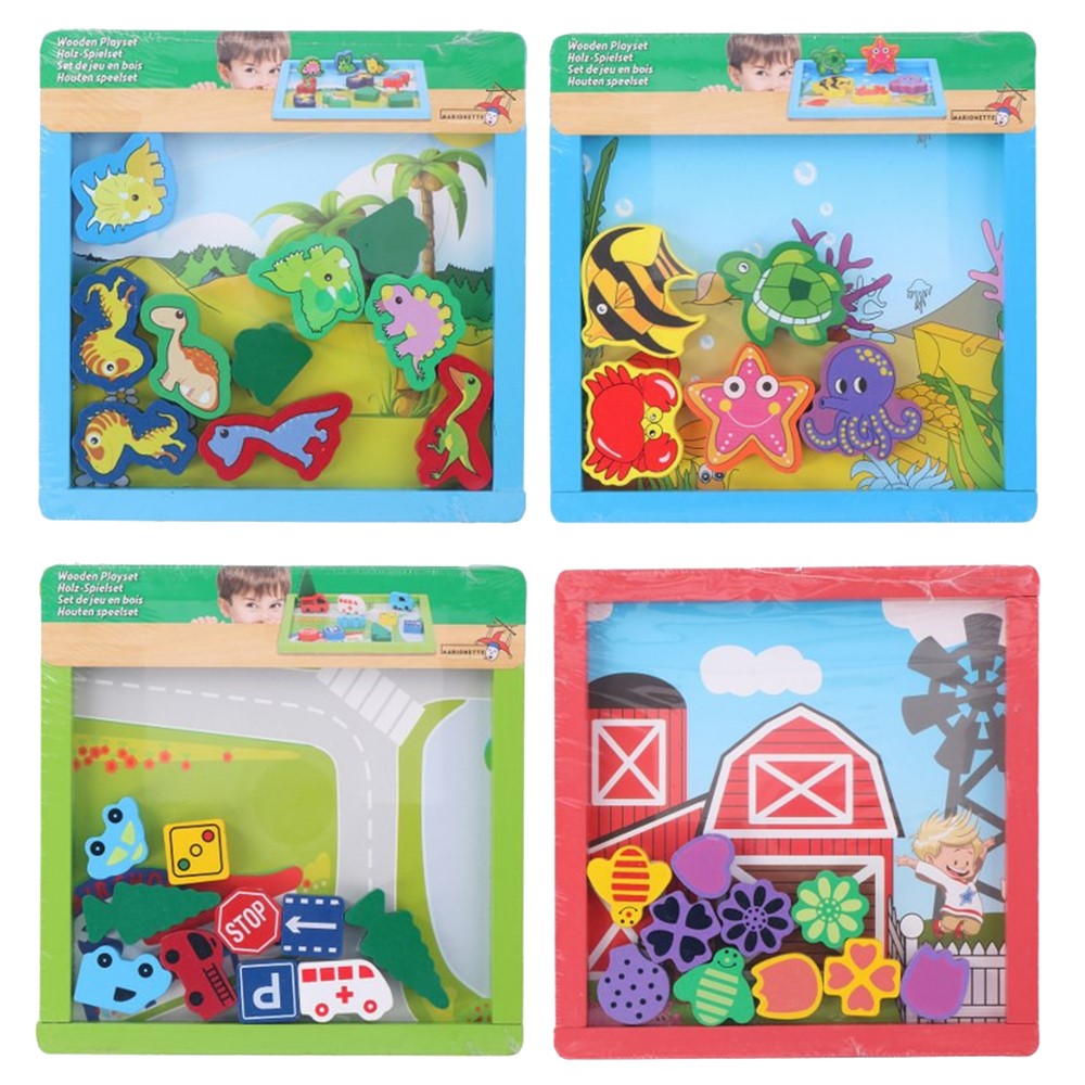 Lodër për fëmijë, prej materiali druri, me forma të ndryshme, të cilat mund të vendosen për të krijuar mjedise të ndryshme nga fëmijët. Kjo lodër ndihmon në zhvillimin e aftësive perceptuale dhe aftësive analitike tek fëmijët. Materiali përbërës dhe boja nuk kanë përmbajtje toksike apo të dëmshme për fëmijët dhe produkti është i çertifikuar për siguri në përdorim. Ky produkt është i përshtatshëm për përdorim nga fëmijë të moshës mbi 18 muajsh.