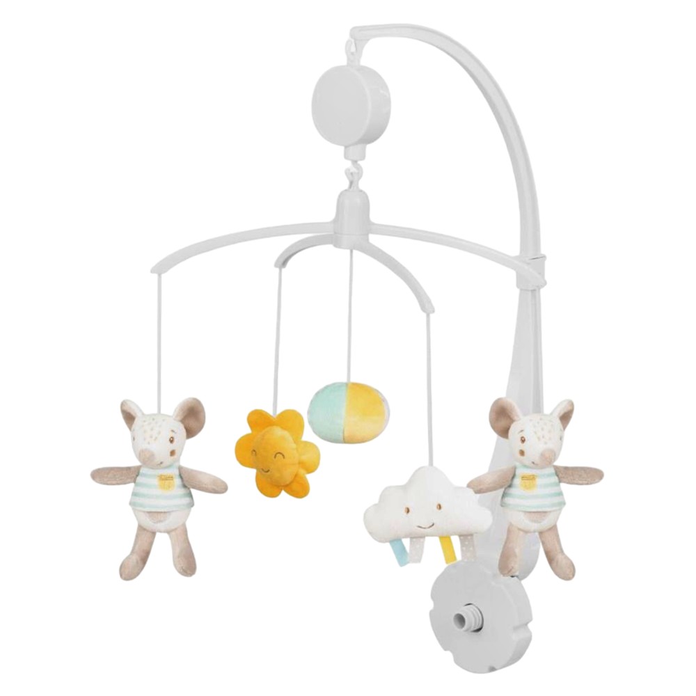 Lodër për fëmijë, Joyful mice, prej materiali plastik dhe pellush, në dizajn shumëngjyrësh, e cila përmban pellushe rrotullues. Përdoret për t'u vendosur në krevatet e bebeve, stimulon perceptimin vizual dhe dëgjimor të fëmijës dhe kontribuon në një gjumë më të lehtë dhe më të rehatshëm. Ky produkt është i përshtatshëm për fëmijë të moshës mbi 6 muajsh.