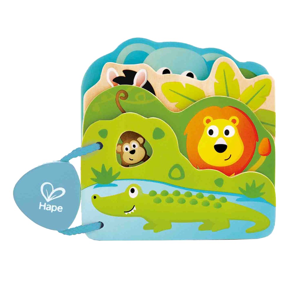 Lodër për bebe, Hape, Wild animal book, druri, 16x2x12.5 cm, mikse, +10 muajsh, 1 copë