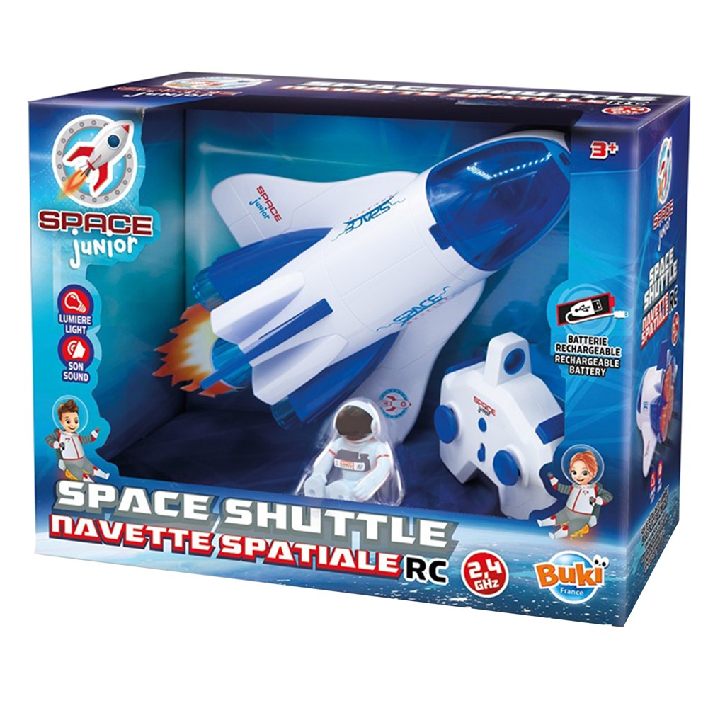Një anije kozmike 28 cm e kontrolluar me radio që lëviz përpara, prapa dhe anash në tokë. Funksionet e zërit dhe dritës për të imituar ngritje. Anija funksionon me një bateri 3,7 V e cila rikarikohet përmes USB.