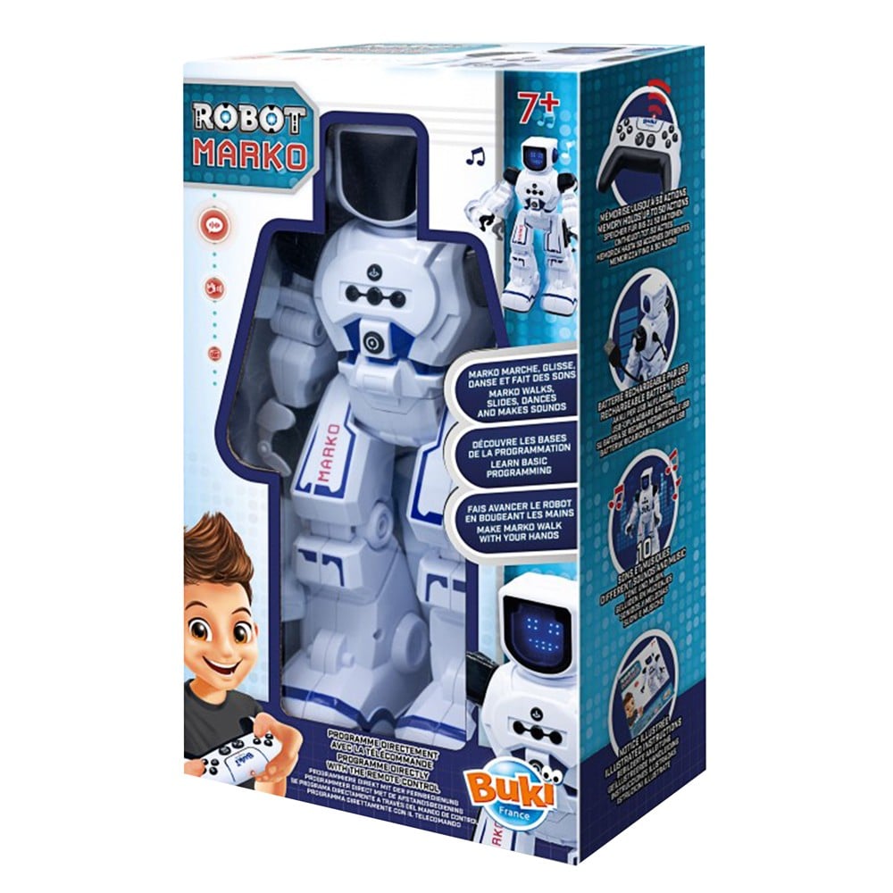 Nëse fëmijëve tuaj u pëlqejnë lodrat elektronike interesante, kënaquni me këtë robot të mrekullueshëm. Marco mund të lëvizë këmbët dhe krahët dhe të ecë, ka një telekomandë të veçantë dhe mund të ofrojë gjithsej 20 funksione. Roboti është me ngjyrë të bardhë, mund të ndjekë një sërë komandash dhe ofron 10 lojëra të ndryshme që do t'i lejojnë fëmijët të eksplorojnë botën e kodimit. Roboti punon me një bateri të ringarkueshme 3.7 V dhe telekomanda kërkon 2 bateri AAA, të cilat nuk përfshihen në komplet.