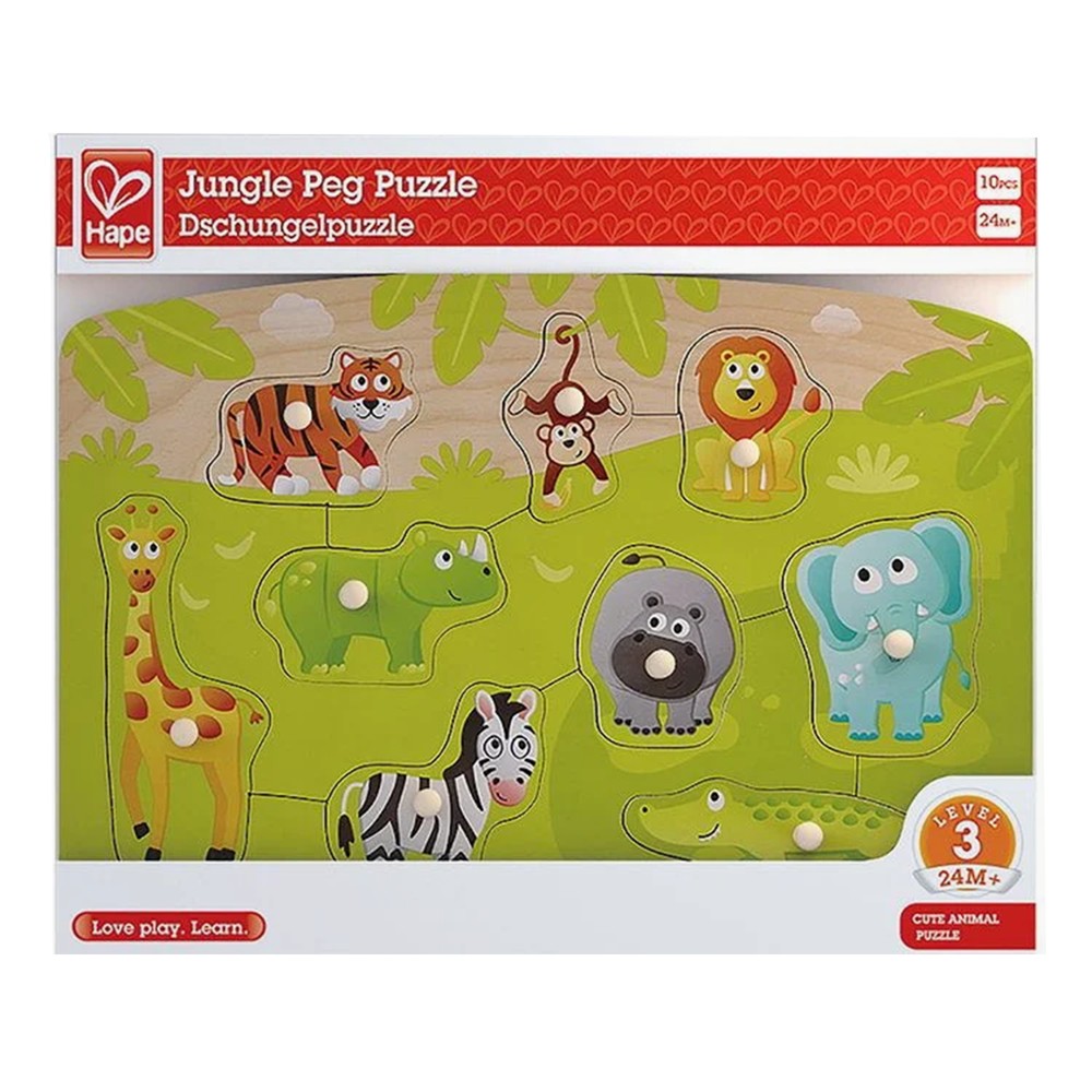 Lodër për fëmijë, Hape, Jungle peg puzzle, druri, mikse, +24 muajsh, 1 copë