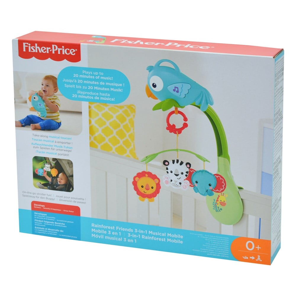 Lodra e krevatit 3 në 1 me veprim të motorizuar dhe katër miq të lezetshëm kafshësh. Argëton fëmijën gjatë gjumit me 20 minuta ninulla muzikore qetësuese. Dhe kur fëmija nuk e përdor më krevatin, Forest Animal Mobile shndërrohet në një zog muzikor për ta nxjerrë për shëtitje ose në një celular për karrocën. Lidheni atë në tendën e karrocës dhe merrni kafshët e lezetshme për një shëtitje me vete, përdorni zogun muzikor edhe jashtë shtëpisë. Funksionon me 3 bateri AA.