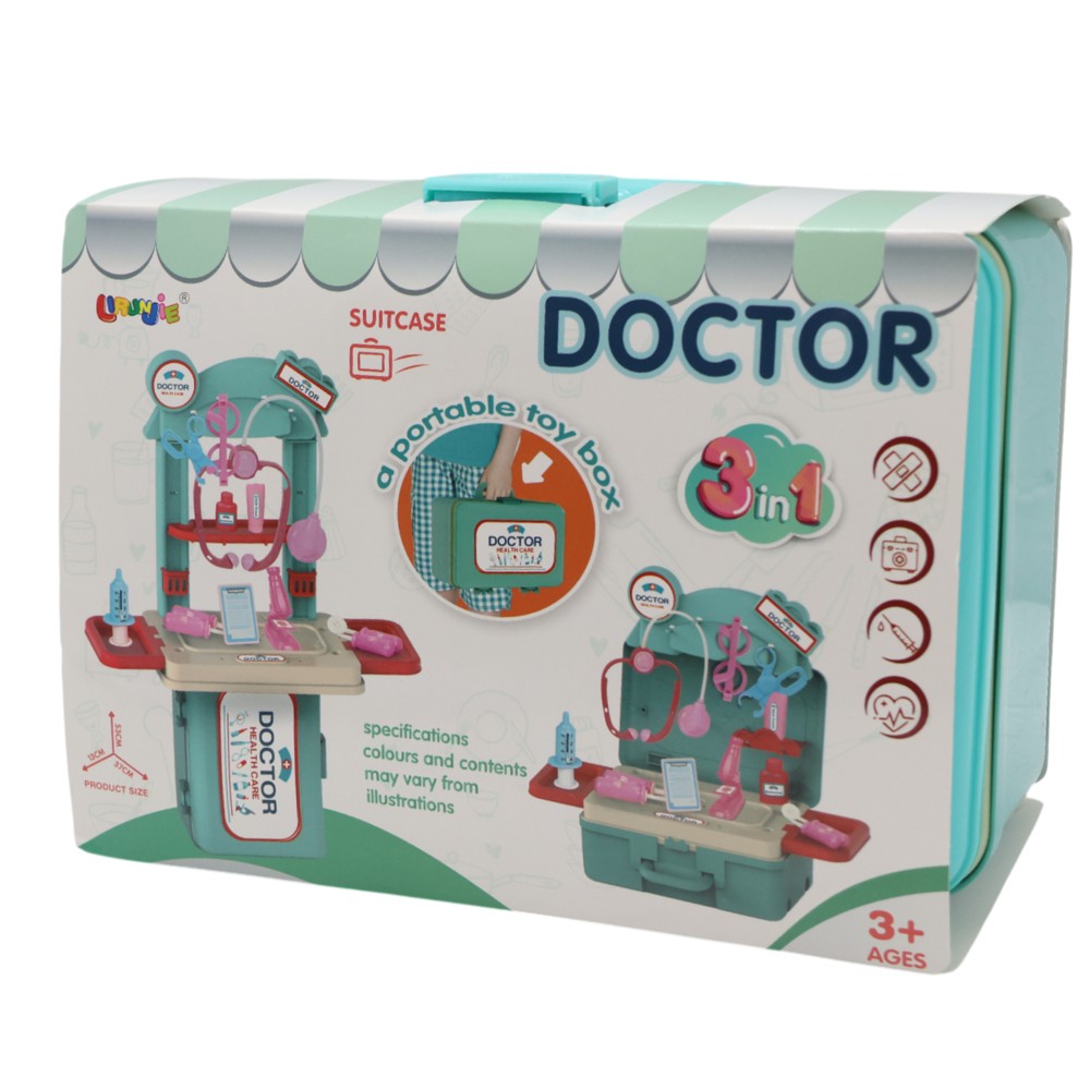 Ky set argëtues dhe edukativ i lejon fëmijët të luajnë role të ndryshme si doktor, infermier ose pacient, duke zhvilluar imagjinatën, aftësitë sociale dhe kreativitetin. Seti përmban instrumente mjekësore, të dizajnuara për përdorim të lehtë nga duart e vogla. Lodra ndihmon gjithashtu në zhvillimin e koordinimit dorë-sy dhe shkathtësive motorike, duke e bërë lojën edukative dhe argëtuese në të njëjtën kohë.