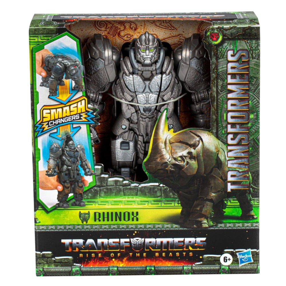 Rhinox, luftëtari i fortë Maximal, konvertohet shpejt në modalitetin robot dhe ngarkohet në fushën e betejës. Shifrat e Smash Changers bazohen në personazhe nga filmi i ri Transformers, Transformers: Rise of the Beasts! Shifrat konvertohen nga modaliteti alt në modalitetin robot në 3 hapa duke thyer. Beteja në Tokë nuk është më midis Autobotëve heroikë dhe Decepticonëve të këqij.