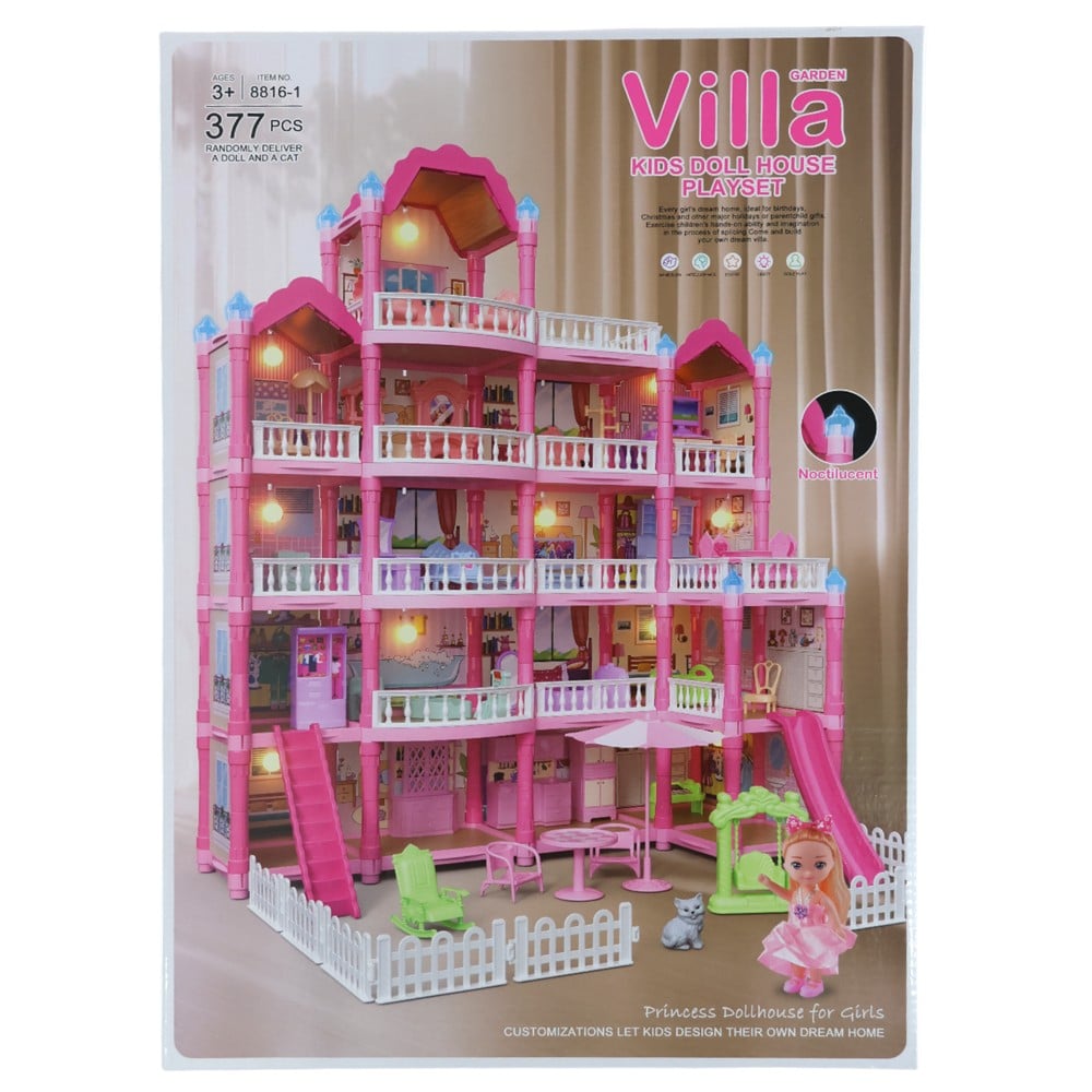 Villa shtëpi kukulle, një set me gjithsej 377 pjesë, ideal për lojë kreative dhe imagjinative. Kjo shtëpi kukulle ofron hapësira të bollshme dhe shumë aksesorë për të krijuar skena argëtuese dhe histori pa fund. Ky set i pasur përfshin mobilje, dekorime dhe detaje të ndryshme, duke i lejuar fëmijët të ndërtojnë, organizojnë dhe personalizojnë çdo dhomë sipas dëshirës. Ndërtesa ka dizajn modern me ngjyra të ndryshme, duke sjellë kënaqësi dhe argëtim të pafund për të vegjlit.