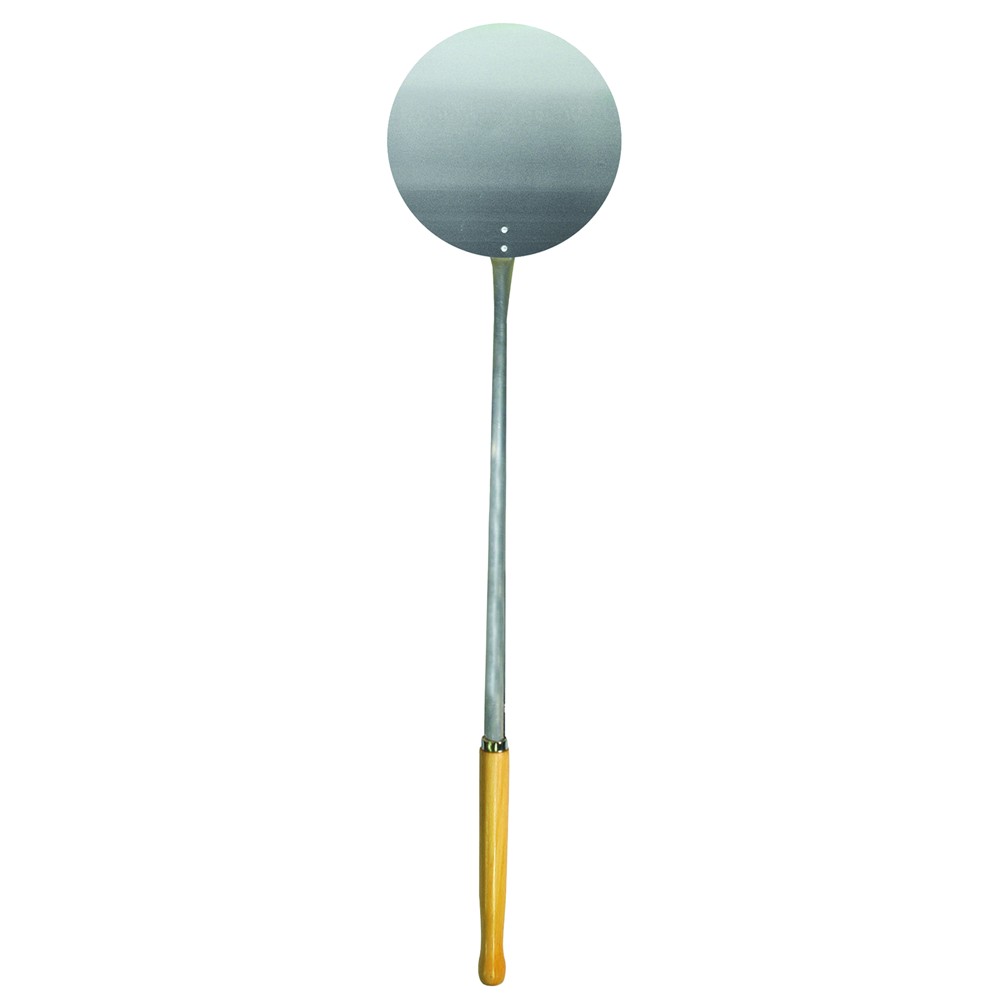 Lopatë rrethore per pica. Forma e saj rrethore dhe përmasat e vogla me diameter 30 cm e bëjnë atë ideal për vendosjen e picave të vogla brenda dhe jashtë furrës. E bërë nga alumini, një material i lehtë dhe rezistent, lopata është e pajisur me një dorezë të rehatshme prej druri ahu 89 cm të gjatë për të siguruar një kapje të fortë dhe të rehatshme.