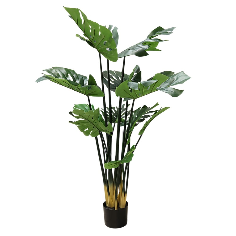 Lulja artificiale në vazo është një objekt dekorativ i krijuar për të sjellë bukurinë e luleve në ambientet e brendshme. Kjo lule artificiale është e vendosur në një vazo në material plastike dhe ka ngjyrë të kombinuar, duke përfshirë nuancat e zeza dhe të gjelbra. Lulja ka një lartësi prej 140 centimetra, duke e bërë atë një element të përshtatshëm për të dekoruar ambiente të ndryshme në shtëpi, zyrë, ose ambiente tjera.
