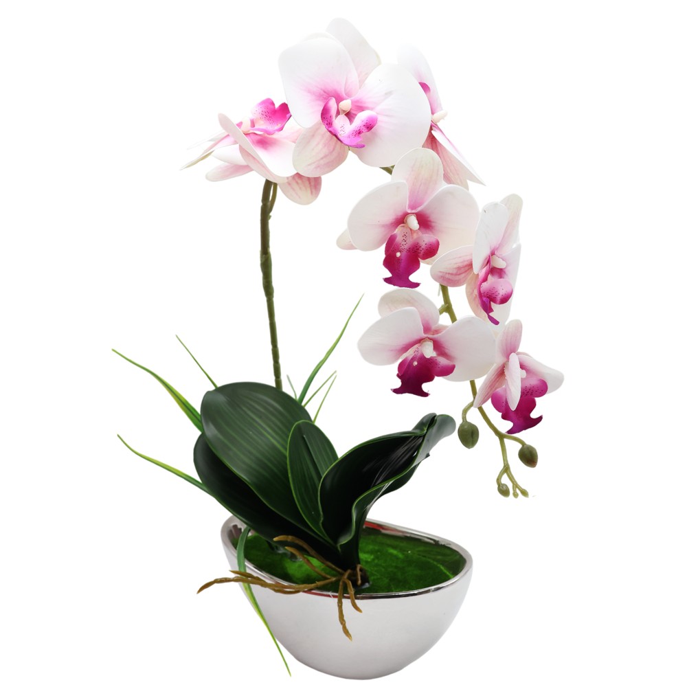 Lule artificiale, në vazo, plastike, e bardhë/çiklamin, 21x42 cm