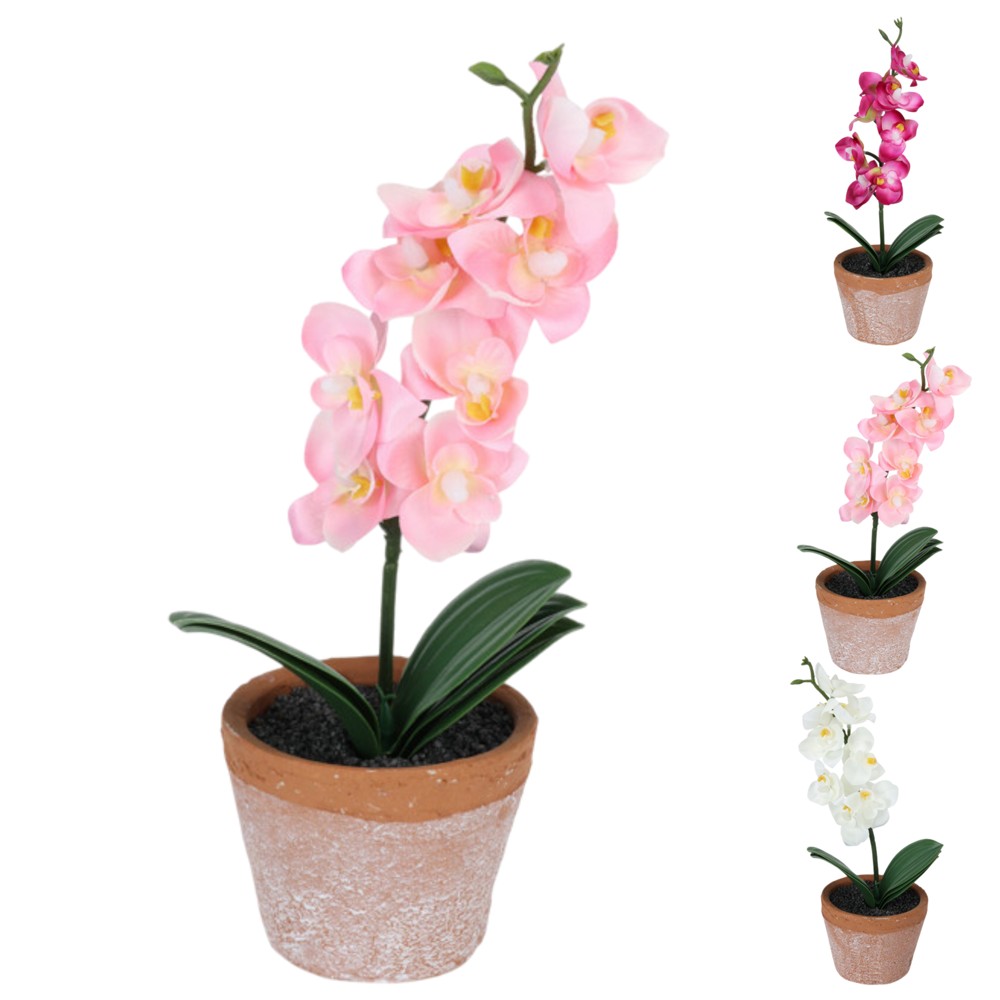 Lule artificiale, Orchide, në vazo, terrakotë/plastike, të ndryshme, Ø2.7xH9.2 cm