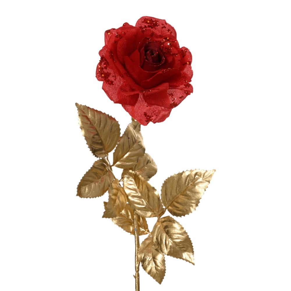 Lule dekorative Christmas, trendafil, ngjyre gold me te kuqe, L.10cm x W.10cm x H.72cm
