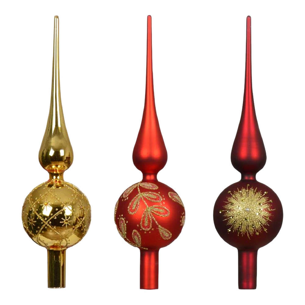 Po vlerësoni:Decorative tree top, glass, red/gold, 8.5x8.5x32.5cm