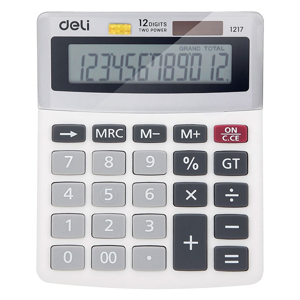 Makinë llogaritëse elektronike, me 6 funksione matematikore, memorie dhe 12 dixhits, e përbërë prej materiali plastik, në ngjyrë të bardhë. Makina llogaritëse ka përmasa kompakte të cilat e bëjnë praktike në përdorim. Ky produkt është i përshtatshëm për përdorim në shkolla, zyra, kancelari, etj.