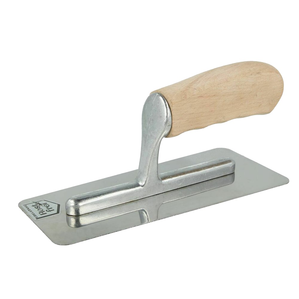 I ndertuar nga celik special. Rezistent ndaj nryshkjes dhe me aftesi te larta elastike, pasi ruan formen fillesate pavaresisht deformimeve gjate aplikimit ne pune. Perdoret per aplikimin e stukos dekorative dhe materiale te ngjashme me te ne siperfaqe mesatare dhe te madhe aplikimi.