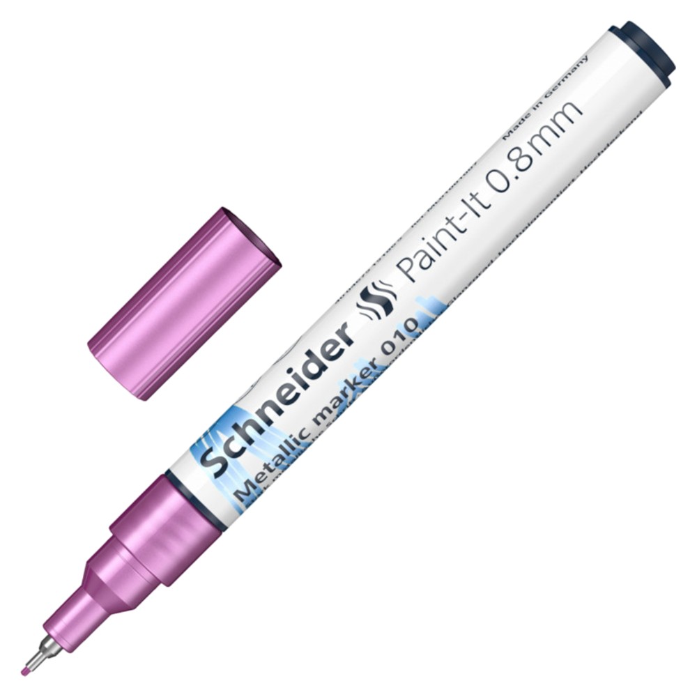 Marker me bojë metalike për të marrë efekte të jashtëzakonshme. Majë e imët për një gjerësi vije prej afërsisht 0,8 mm. Ngjyra e bojës violet metalike. Teknologjia e re e pigmentit lejon aplikim të pastër dhe homogjen të ngjyrave. Grimcat e aluminit të veshura me pigmente me ngjyra prodhojnë një efekt shumë metalik me një nivel jashtëzakonisht të lartë shkëlqimi, madje edhe nën incidenca të ndryshme drite. I përshtatshëm për shumë sipërfaqe. Rezultatet më të mira merren në sipërfaqe të errëta, jo absorbuese. Bojë me tharje të shpejtë e kontrolluar në mënyrë efektive nga një valvul.