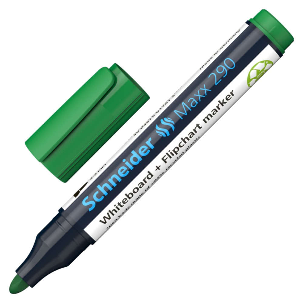 Marker për tabelë të bardhë, gjerësia e vijës 2-3 mm. Ngjyra e shkrimit jeshile. Qoftë në një tabelë të bardhë apo në letër, ngjyrat e forta dhe të gjalla janë të lehta për t'u lexuar edhe nga pjesa e pasme e dhomës. Boja mund të hiqet nga tabelat e bardha me një leckë të thatë pa lënë mbetje dhe nuk do të depërtojë në faqen prapa. Boja me kapak nuk thahet edhe nëse kapaku hiqet për 2-3 ditë. Ka një aromë të ulët dhe nuk përmban toluol dhe xylol.