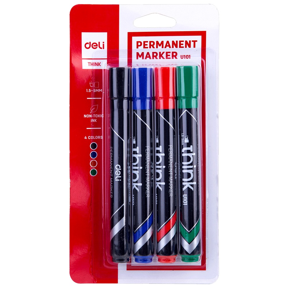 Marker permanent për tabelë, Deli, plastik, miks, 4 cope